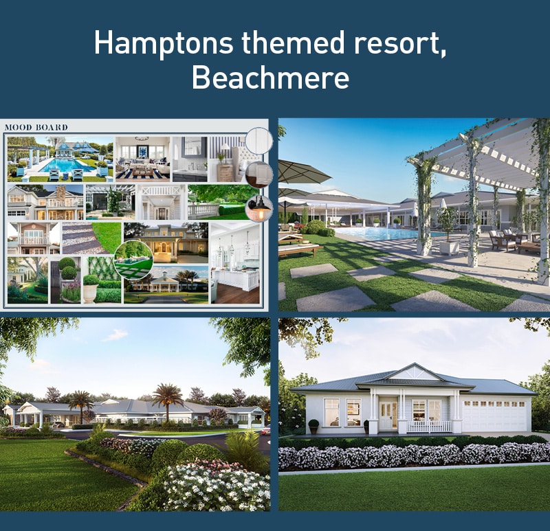 We have extensive experience in developing resort themes for over 50s, creating a deep and connected continuity across architecture, home design, interior design and landscaping.