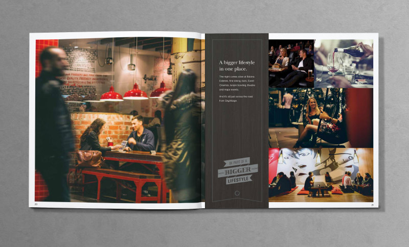 To deliver the right feel of a modern city village, we used graphics such as white timber, a classic fashion herringbone pattern, dark slate and a deep cinnamon coloured leather.