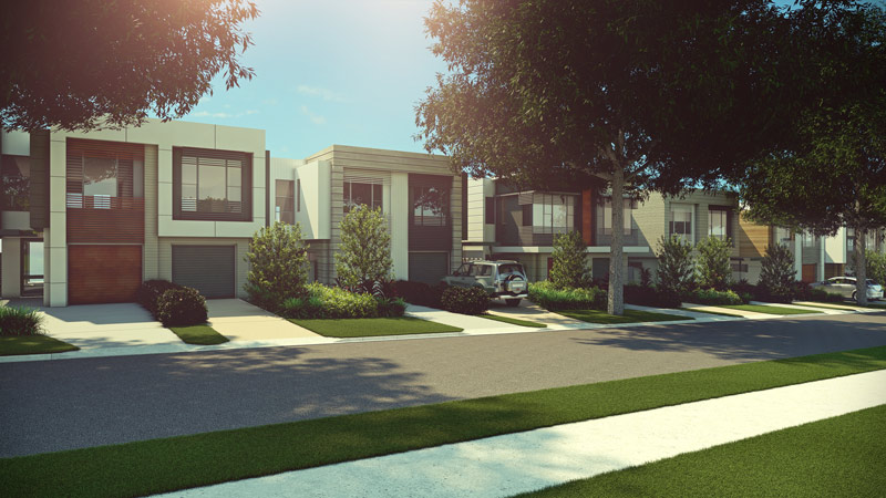 The City Village development in Robina comprises 130 terrace homes within a masterplanned city centre.